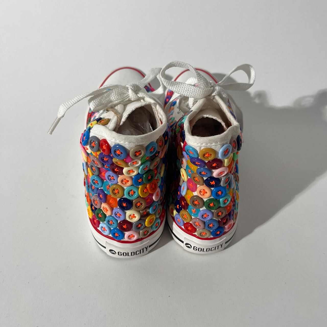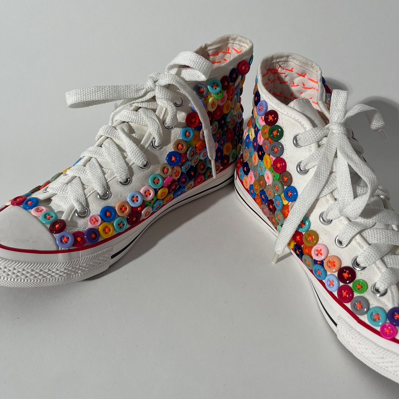 一つ一つボタンが縫い付けられた印象的なデザイン。
