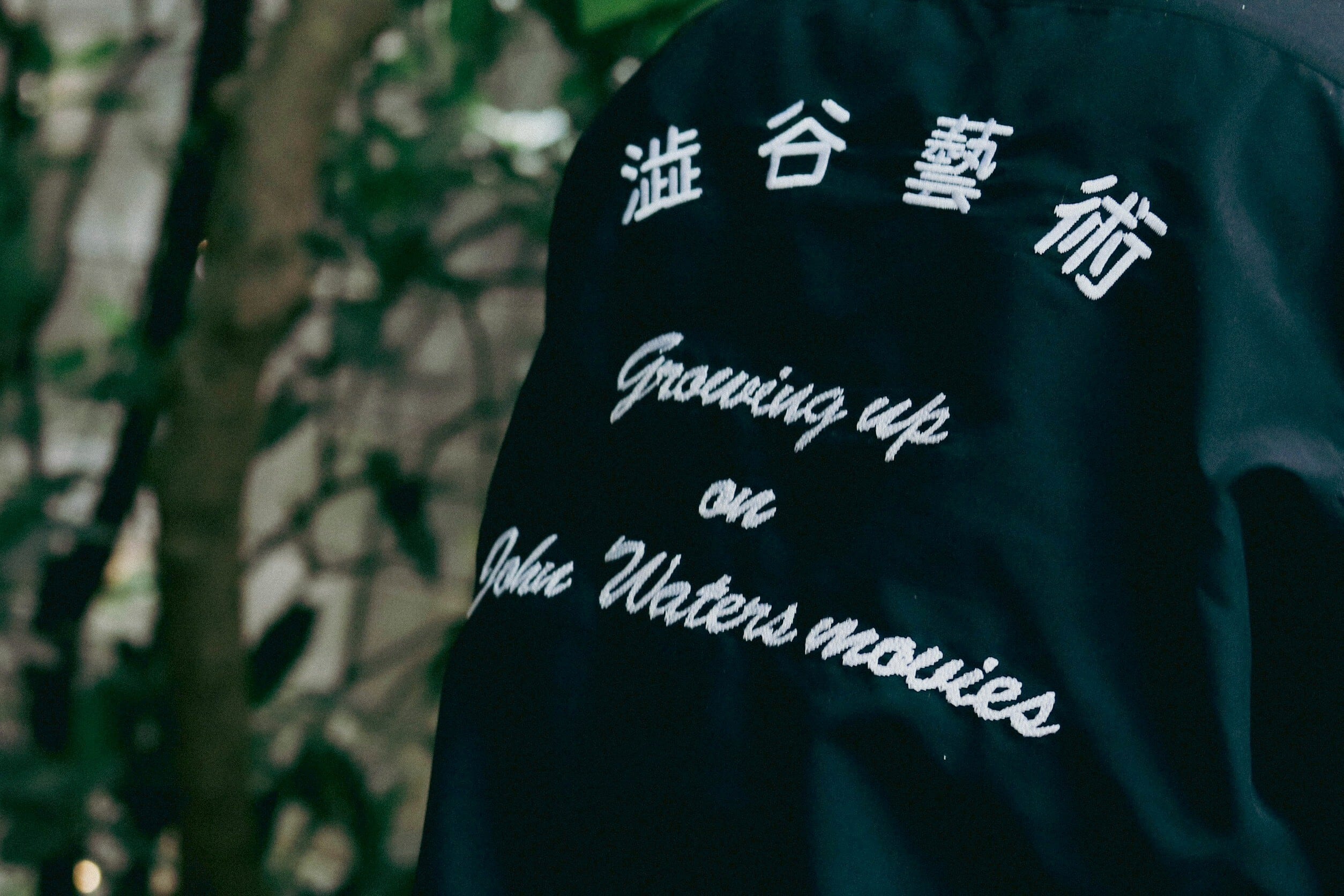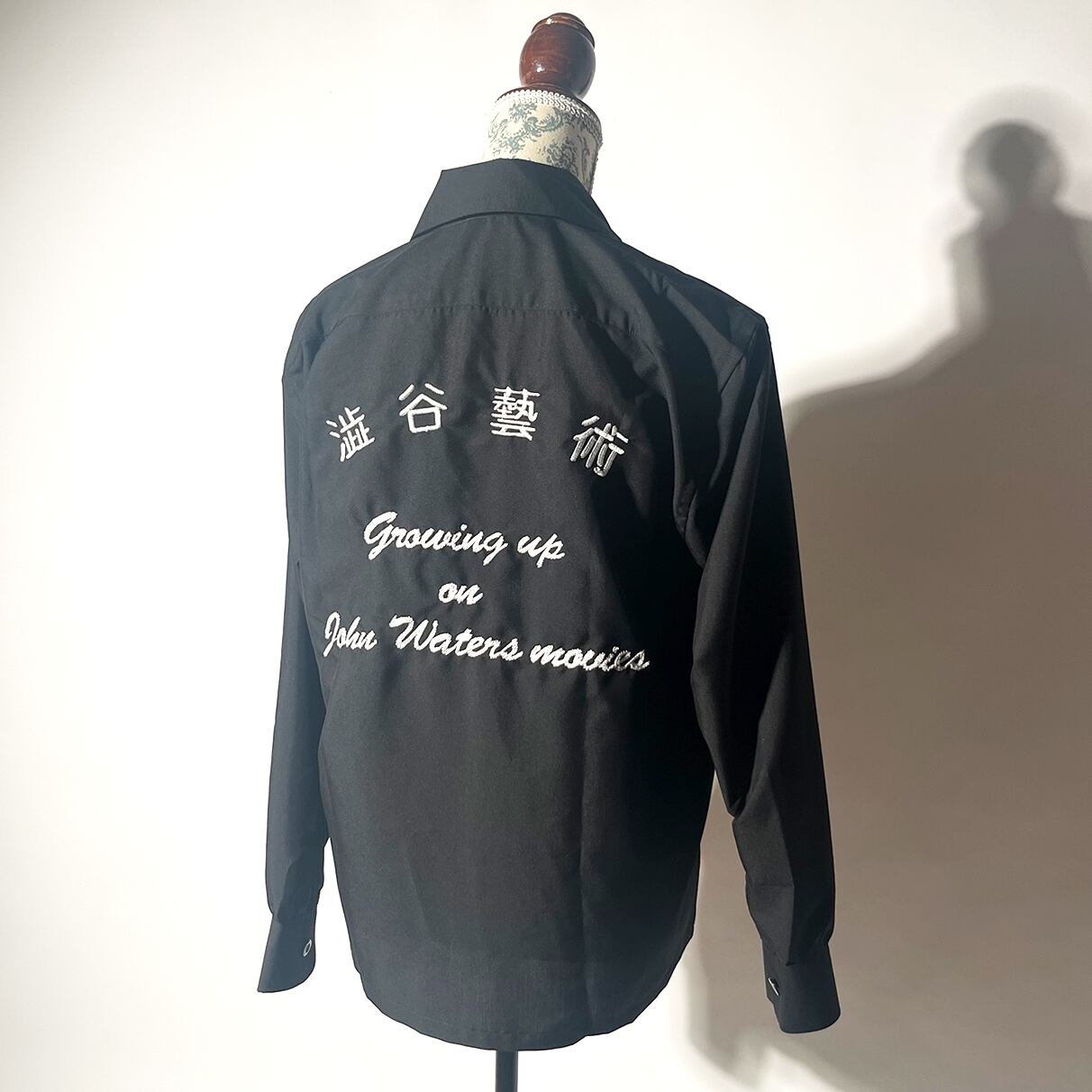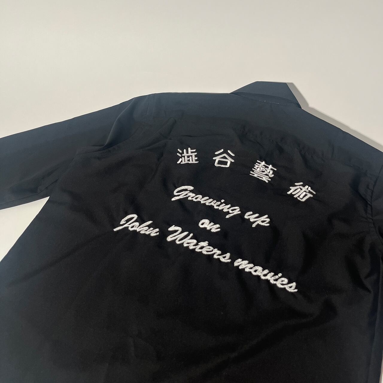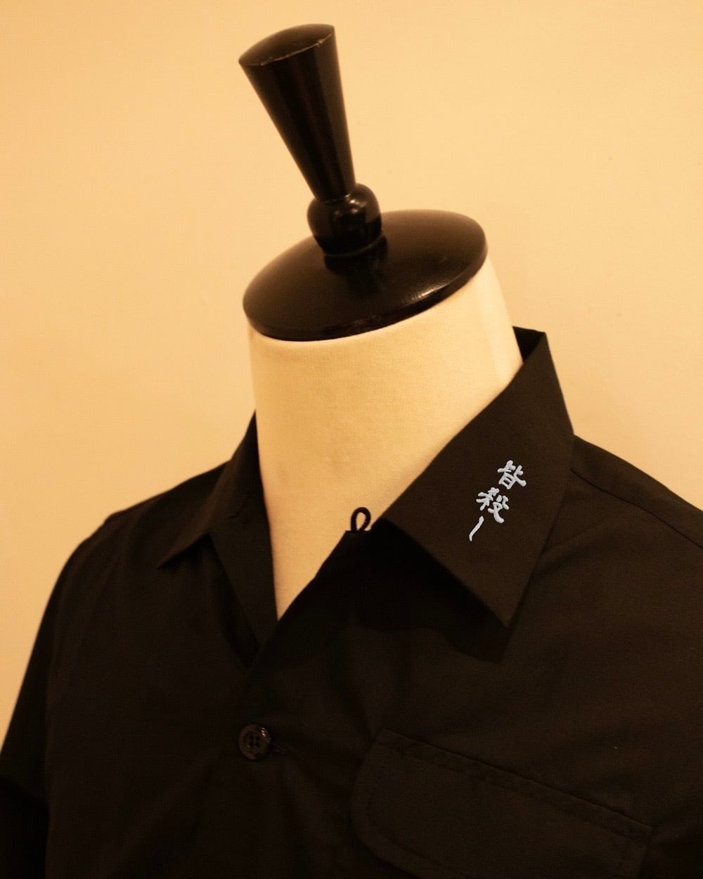 "澁谷藝術" 開襟シャツの襟に"皆殺し"刺繍を